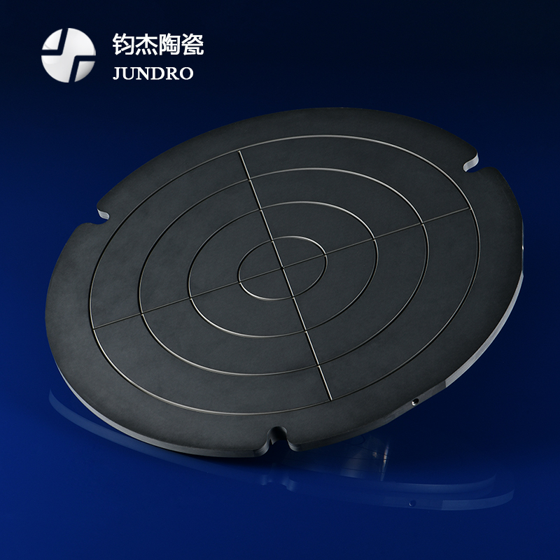 在高端光刻機中,涉及高效率、高精度、高穩(wěn)定性的運動控制技術(shù)和驅(qū)動技術(shù),對結(jié)構(gòu)件的精度和結(jié)構(gòu)材料的性能提出了極高的要求。碳化硅陶瓷具有極高的彈性模量、導熱系數(shù)和較低的熱膨脹系數(shù),不易產(chǎn)生彎曲應力變形和熱應變,并且具有極佳的可拋光性,可以通過機械加工至優(yōu)良的鏡面,因此采用碳化硅陶瓷作為光刻機用精密結(jié)構(gòu)件材料具有極大的優(yōu)勢。在光刻機中碳化硅陶瓷主要用于制造E-chuck、Vacumm-chuck、Block、磁鋼骨架水冷板、反射鏡、導軌等部件。