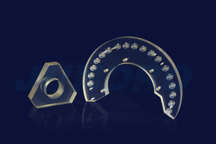 超低膨脹微晶玻璃結(jié)構(gòu)件是極端環(huán)境下精密設(shè)備的核心組件,其熱膨脹系數(shù)可低至±1×10??/℃以下,在-200℃至800℃溫差中幾乎無(wú)尺寸變化,遠(yuǎn)超普通金屬與陶瓷的穩(wěn)定性。 這類結(jié)構(gòu)件采用鋰鋁硅系微晶玻璃經(jīng)精準(zhǔn)晶化制成,內(nèi)部析出均勻的β-石英固溶體微晶,通過(guò)晶體與玻璃相的熱膨脹抵消實(shí)現(xiàn)超低膨脹。經(jīng)CNC精密加工,其平面度可達(dá)0.1μm/m,表面粗糙度Ra≤0.01μm,適配光學(xué)儀器、航天導(dǎo)航等對(duì)尺寸穩(wěn)定性要求嚴(yán)苛的場(chǎng)景。 同時(shí),它兼具高強(qiáng)度(抗彎強(qiáng)度>150MPa)與抗熱沖擊性,能耐受劇烈溫度波動(dòng)而不碎裂,為射電望遠(yuǎn)鏡支架、芯片光刻平臺(tái)等關(guān)鍵設(shè)備提供了不可替代的結(jié)構(gòu)支撐。